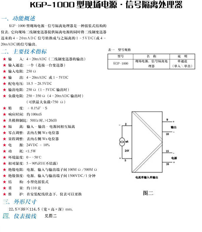 ▲KGP-1000型现场电源.信号隔离处理器
