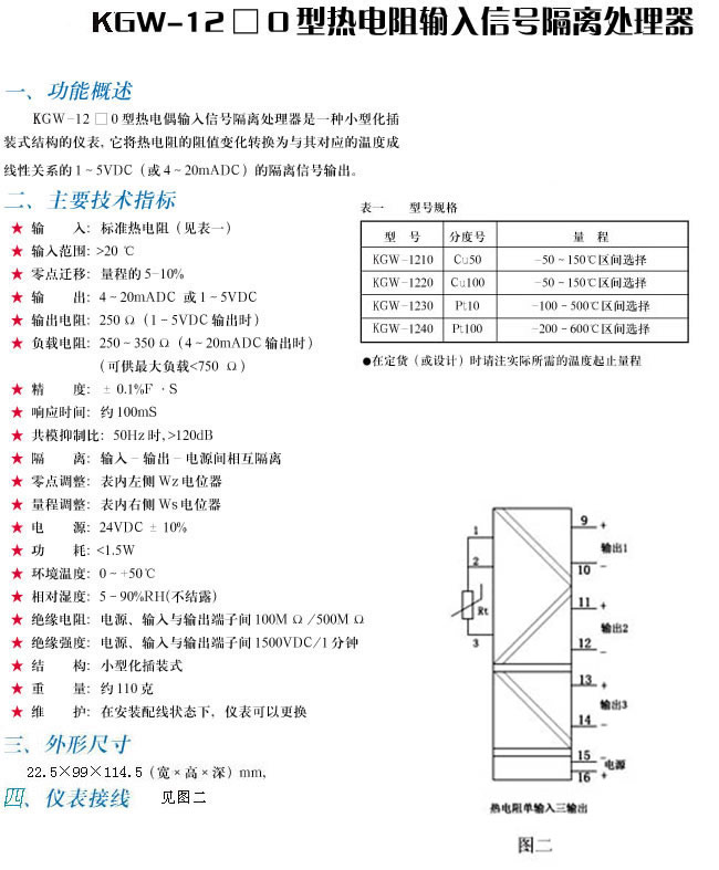 ▲KGW-12□O型热电阻输入信号隔离处理器