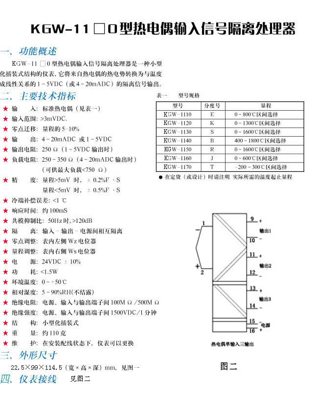 ▲KGW-11□O型热电偶输入信号隔离处理器