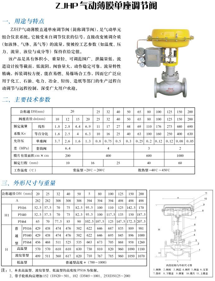 ZJHP气动薄膜单座调节阀