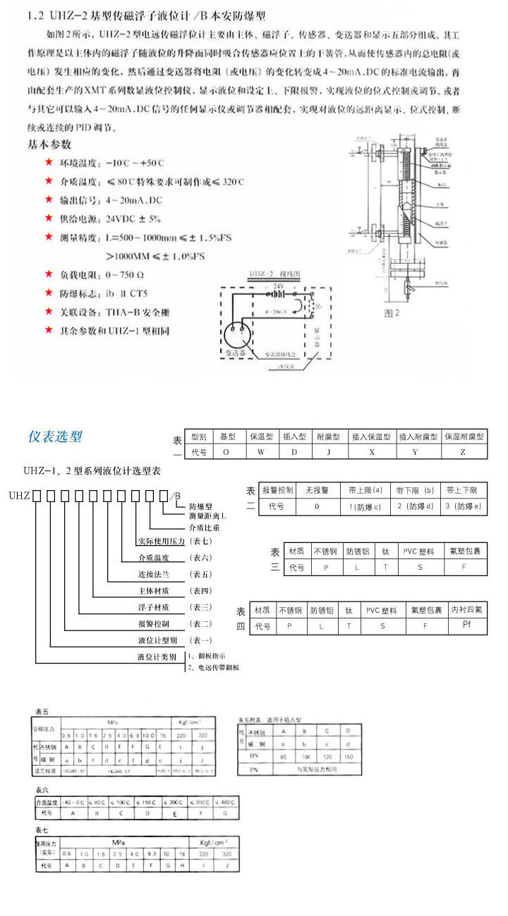 1.2、UHZ-2基型传磁浮子液位计/B本安防爆型