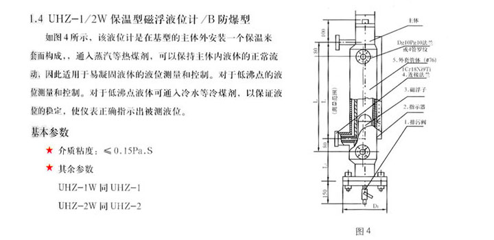 1.4、UHZ-1/2Q保温型磁浮液位计/B报爆型