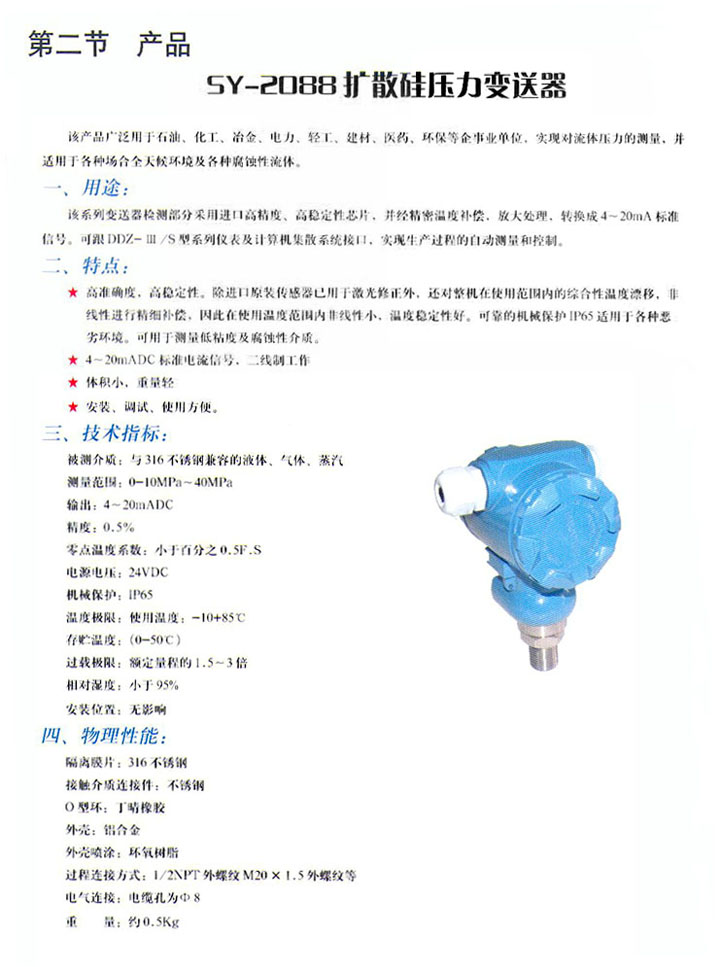 SY-2088扩散硅压力变送器 (型谱)