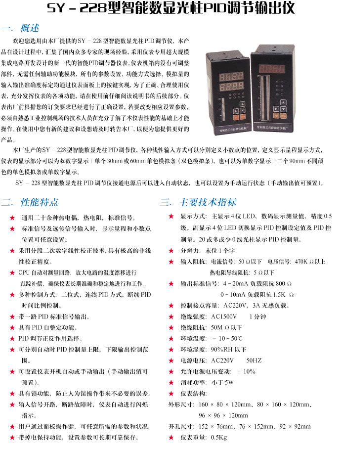 SY-228型智能数显光柱PID调节输出仪
