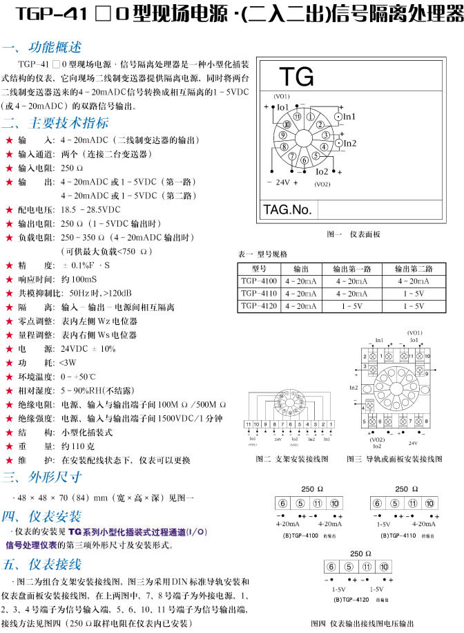 ▲TGP-41□0型现场电源.(二入二出)信号隔离处理器